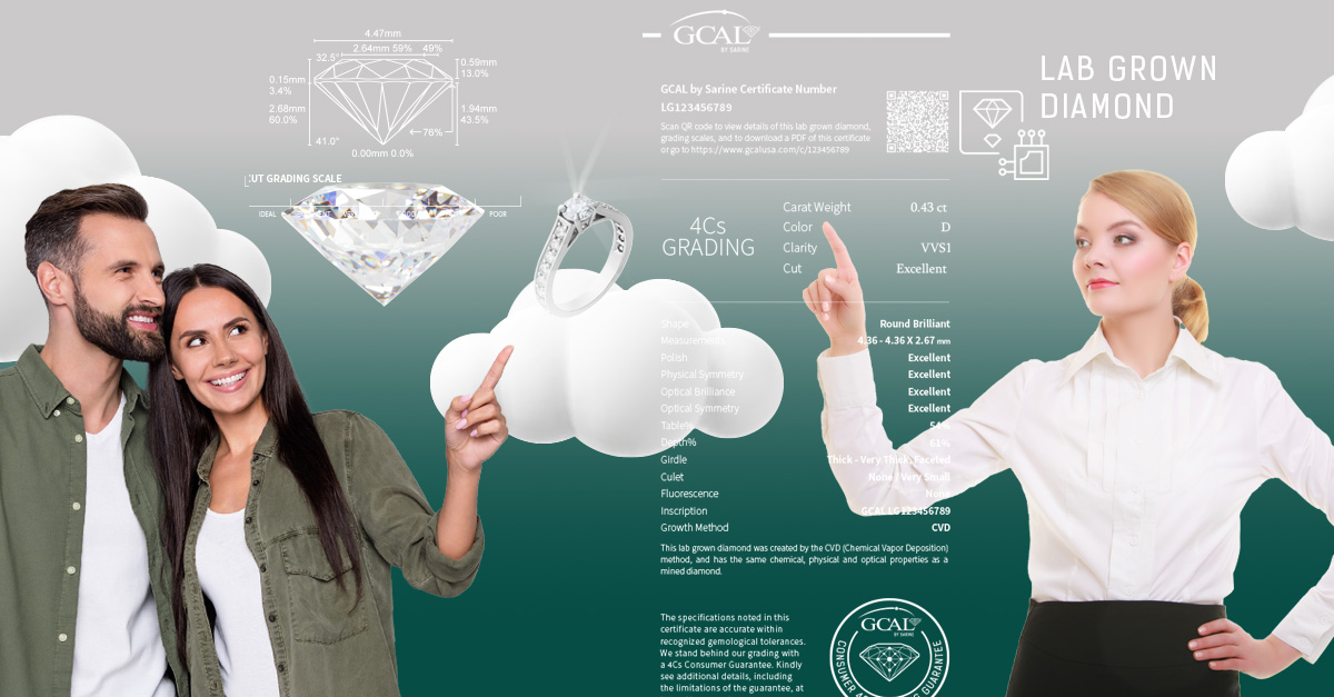 We believe consumers should feel confident about their diamond purchase; that's why our mission is to provide the most accurate and consistent grading services with uncompromising integrity and unparalleled customer care. The New York-established Gem Certification & Assurance Lab (GCAL) and Sarine Technologies formed a groundbreaking partnership in 2023, known as GCAL by Sarine. This collaboration merges GCAL's renowned standards, supported by its industry-unique 4C's consumer guarantee, with Sarine's revolutionary AI-based Grading Technology. Together, we aim to revolutionize the diamond industry with unmatched accuracy, consistency, and transparency in grading and authentication. This partnership instills greater confidence in diamond purchases, promising transformative advancements in the way diamonds are graded. We guarantee customers the most comprehensive diamond grading services globally, covering all aspects of a diamond's quality. GCAL by Sarine's lab-grown diamond certificates entail advanced features and innovative technologies to help LGD retailers achieve key objectives crucial for success in 2024 and beyond.